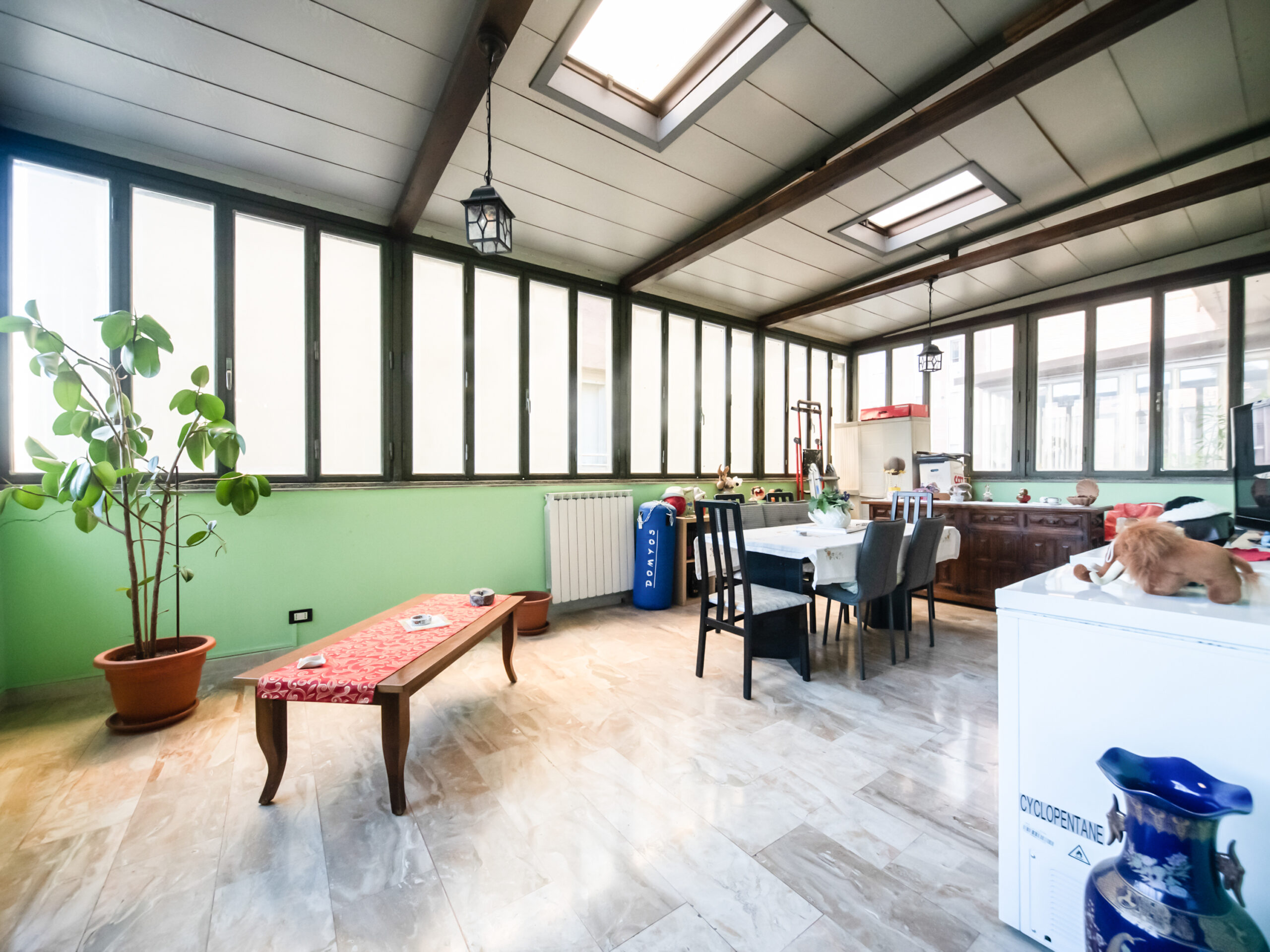 La veranda è regolarmente condonata e completa di tutta la documentazione attestante la conformità urbanistica ed edilizia. Nel mese di ottobre è previsto l’intervento di sostituzione completa degli infissi della veranda, che contribuirà a migliorare il comfort abitativo.