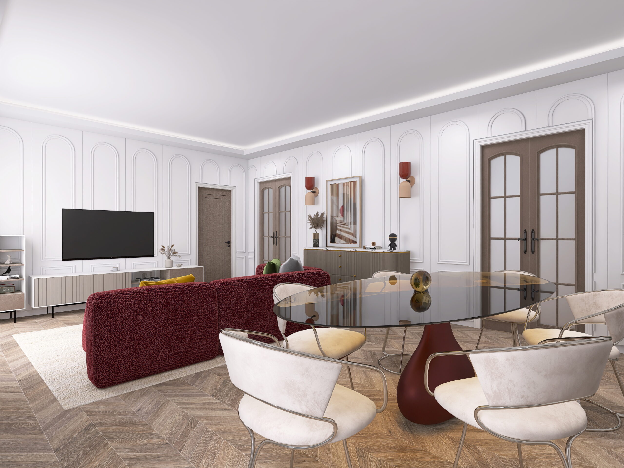 La doppia esposizione, i soffitti alti tre metri e le numerose portefinestre garantiscono estrema luminosità in tutti gli ambienti.