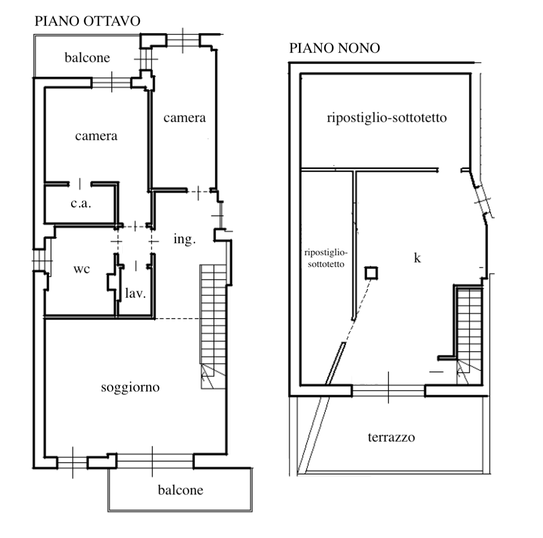 l’immobile è composto da ingresso, soggiorno con accesso al balcone, cucina con accesso al terrazzo, camera da letto matrimoniale con cabina armadio ed accesso al balcone, seconda camera da letto con accesso al balcone, bagno con doccia finestrato, ripostiglio/lavanderia, due ripostigli e comoda scala interna di collegamento ai piani