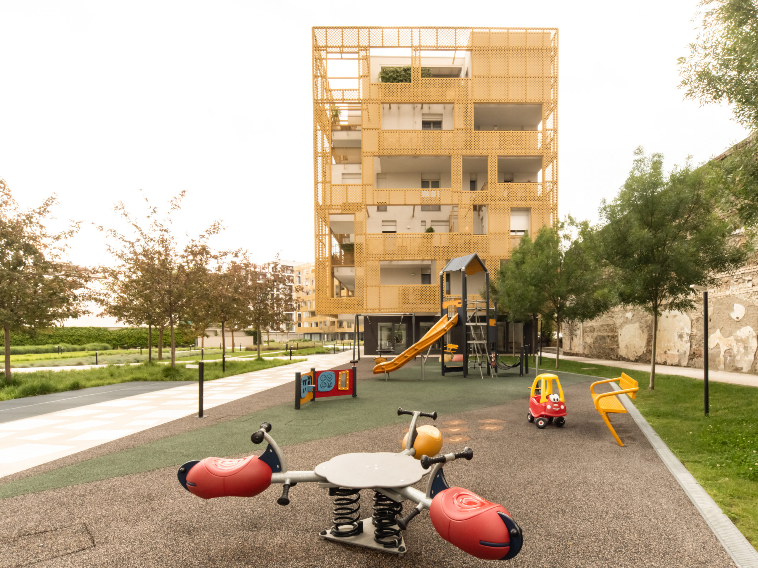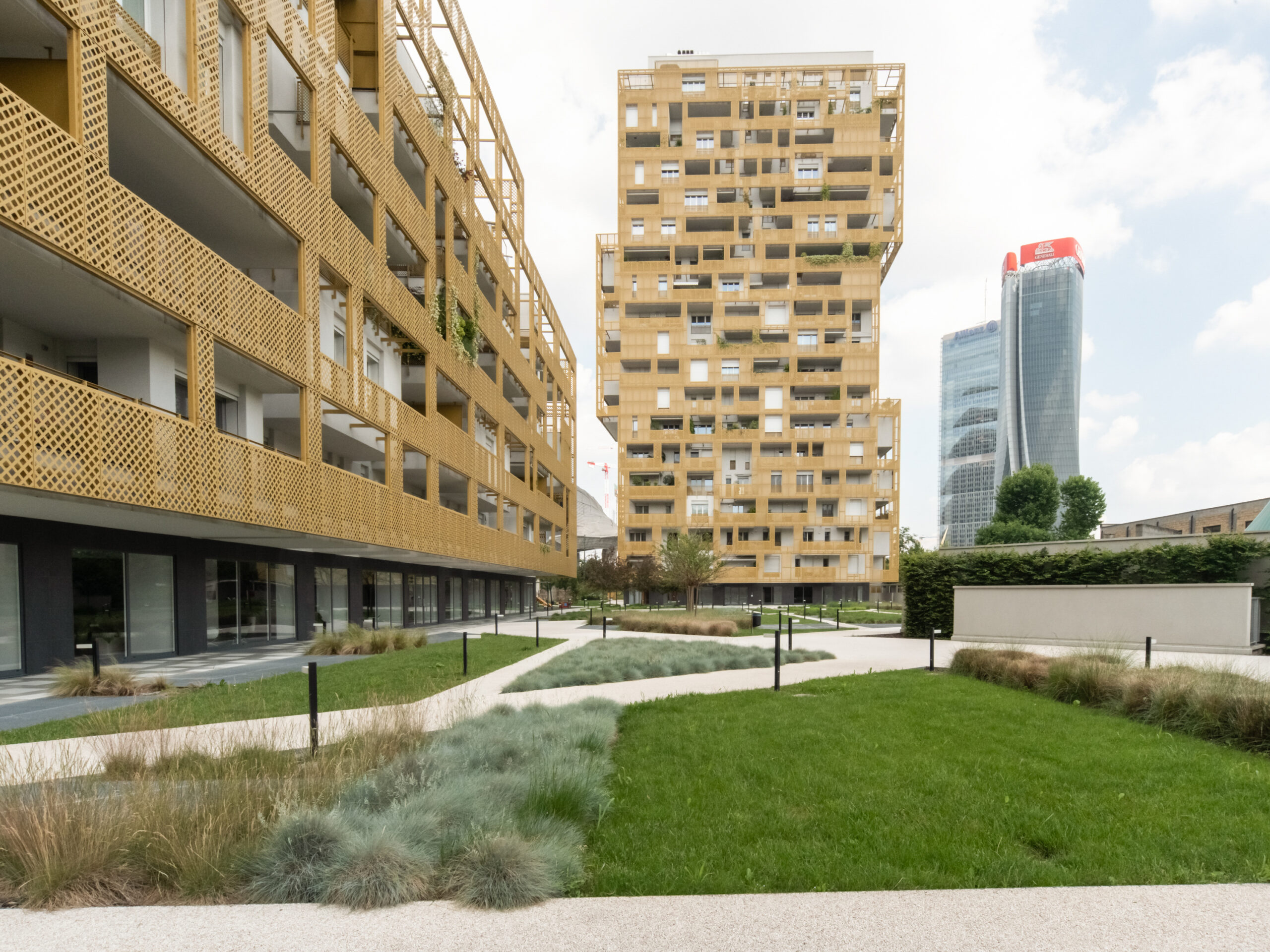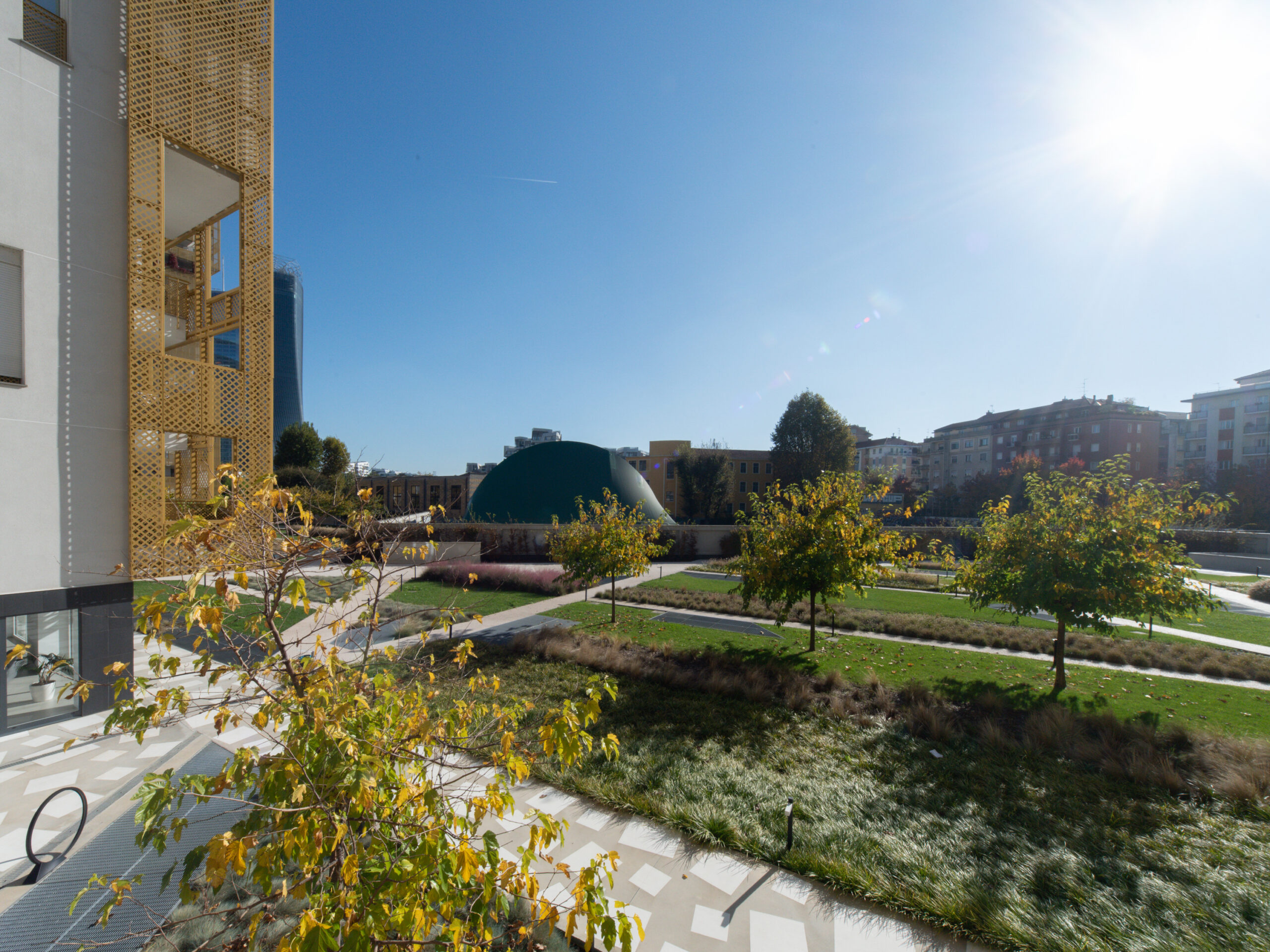 La residenza, di recente realizzazione, è immersa in un ampio giardino interno privato di circa 8.000 m², vero e proprio cuore verde del complesso, arricchito da ampie aree verdi, spazi piantumati e zone gioco dedicate ai bambini.