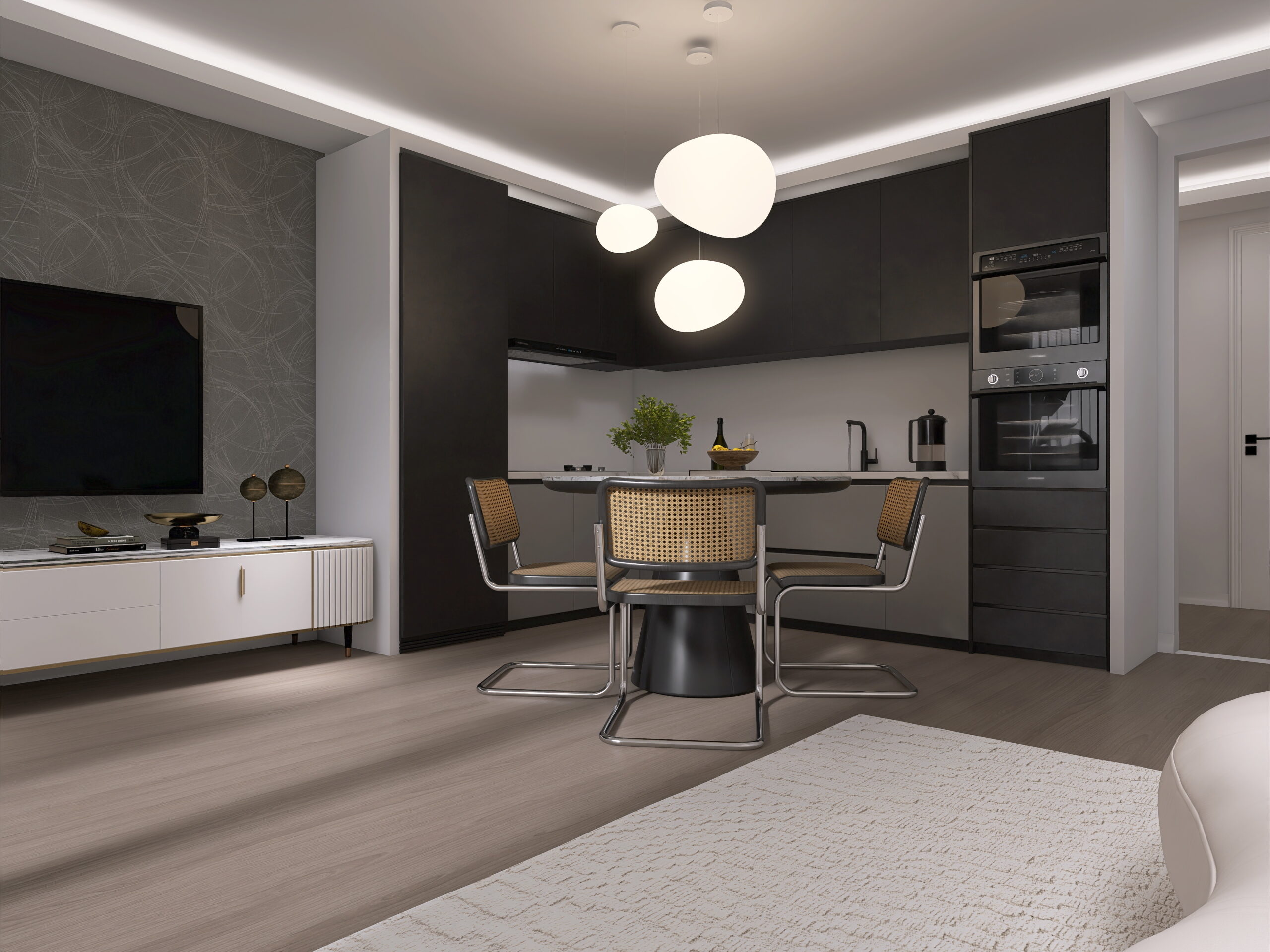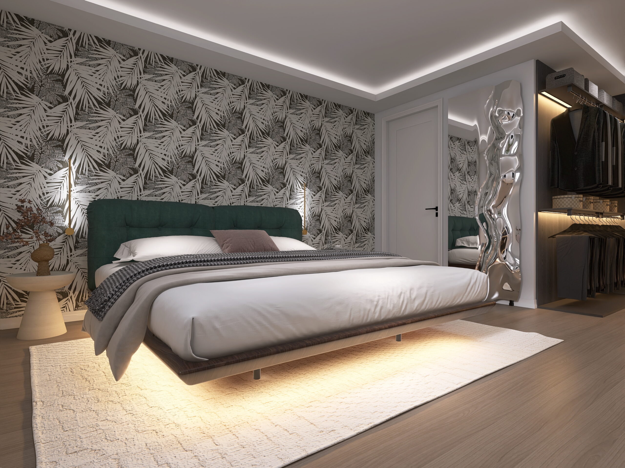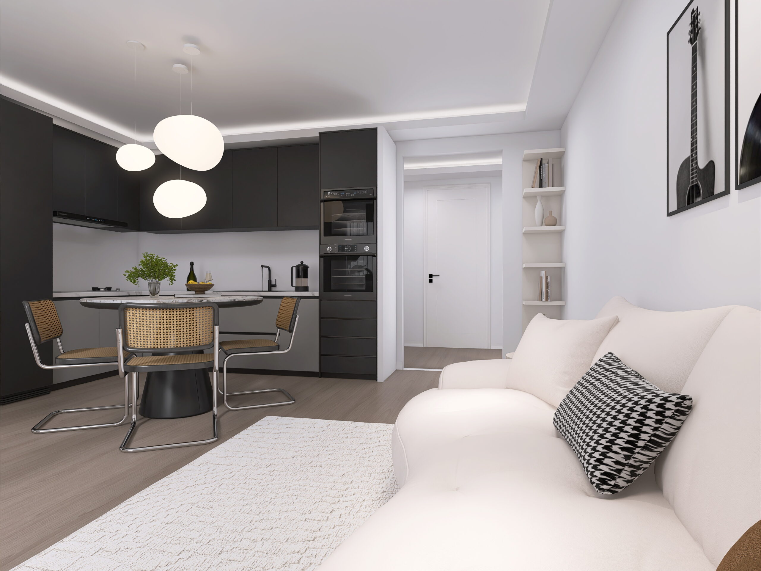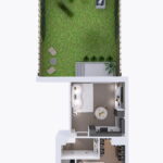 il progetto prevede la suddivisione degli spazi interni (vedi progetto pubblicato) in disimpegno d’ingresso, soggiorno con cucina a vista ed accesso diretto al giardino privato di 48 mq, ampia camera da letto e bagno finestrato
