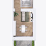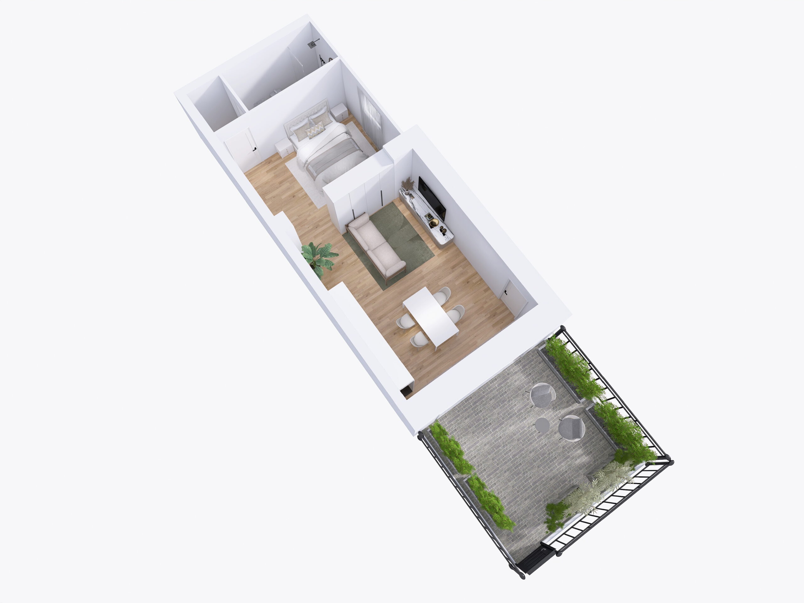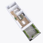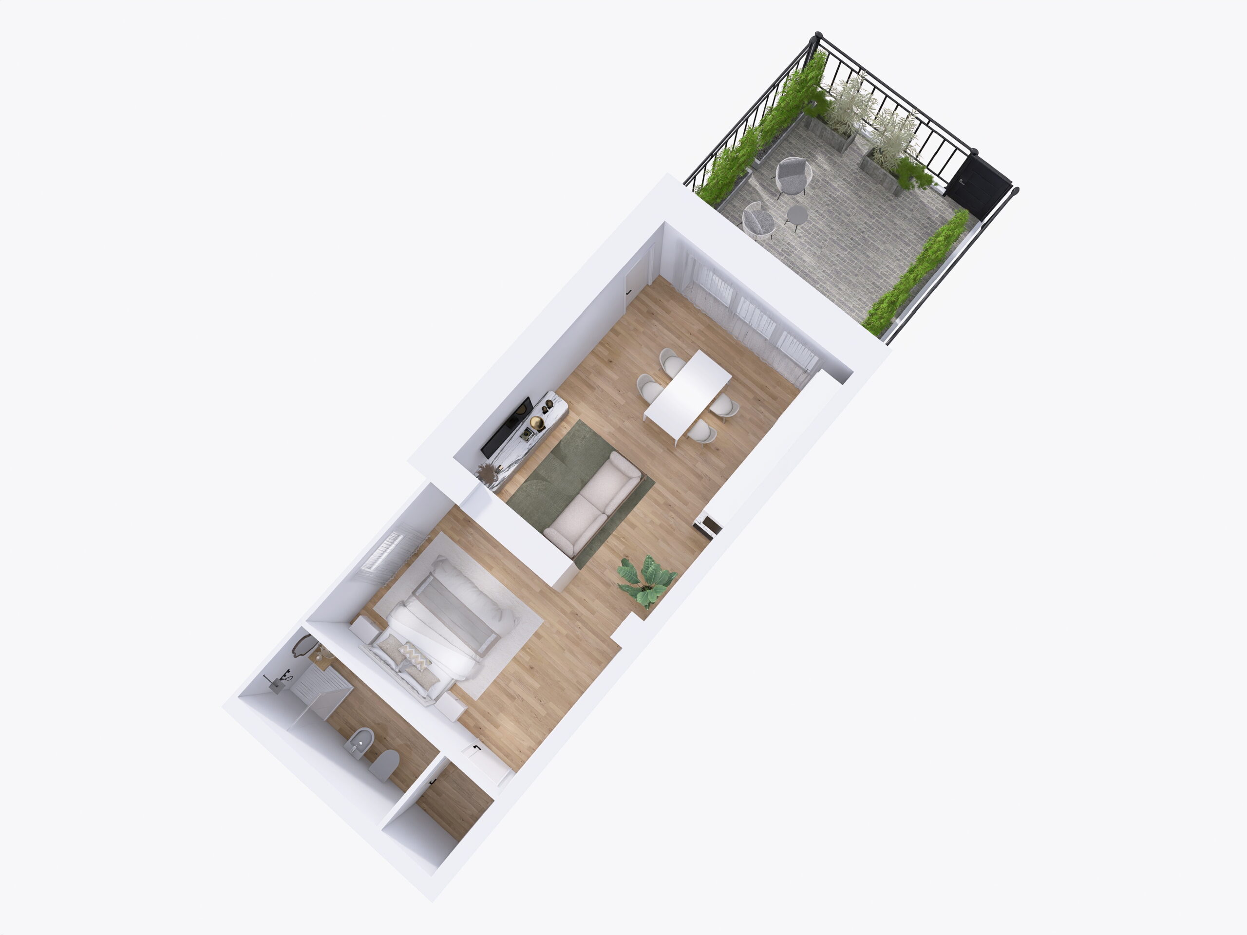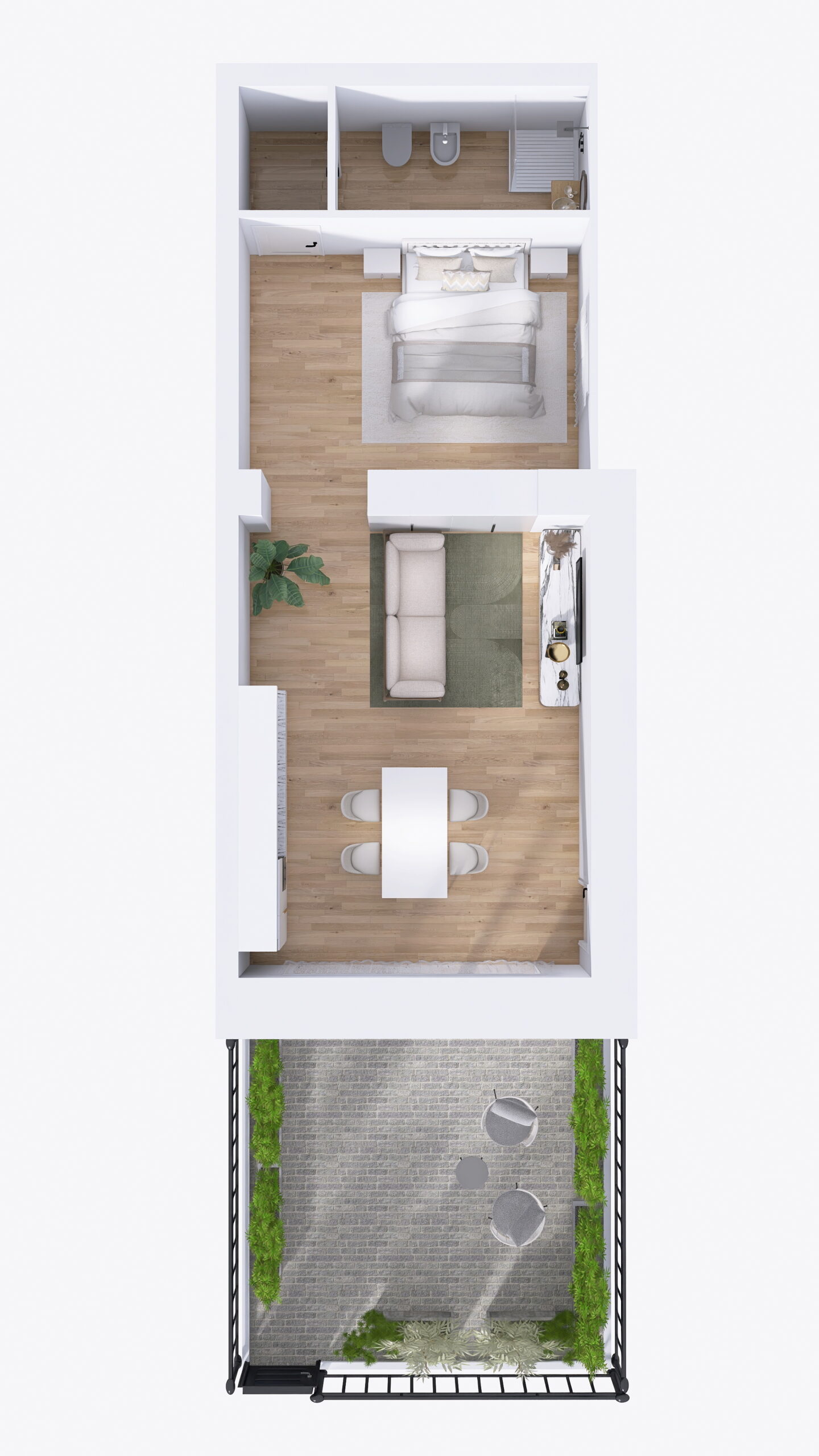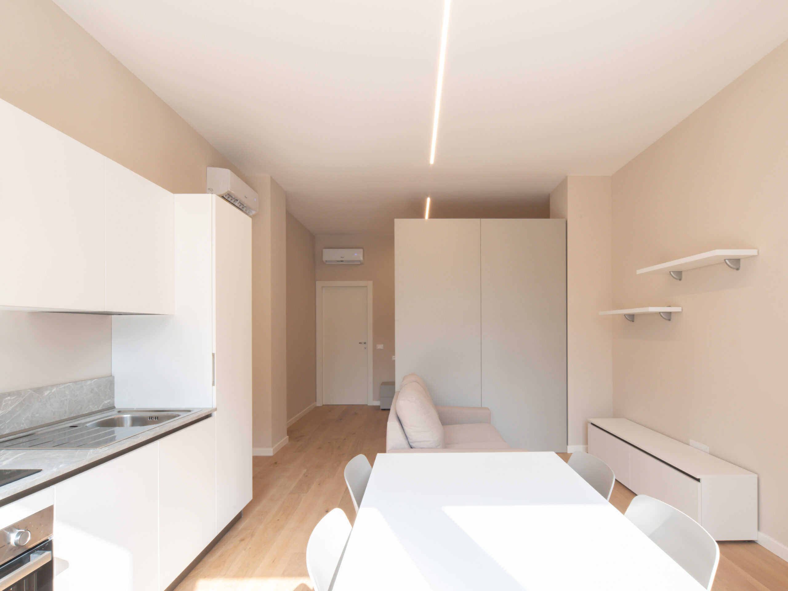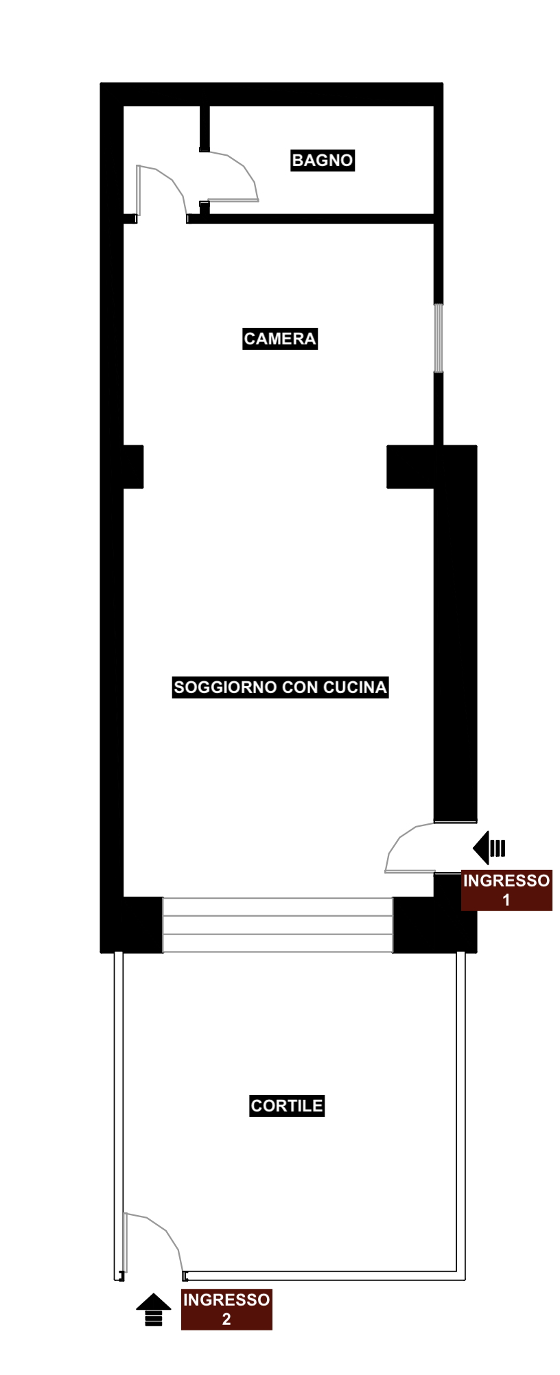 l’immobile è composto da ingresso, soggiorno con cucina a vista, camera matrimoniale e bagno con doccia