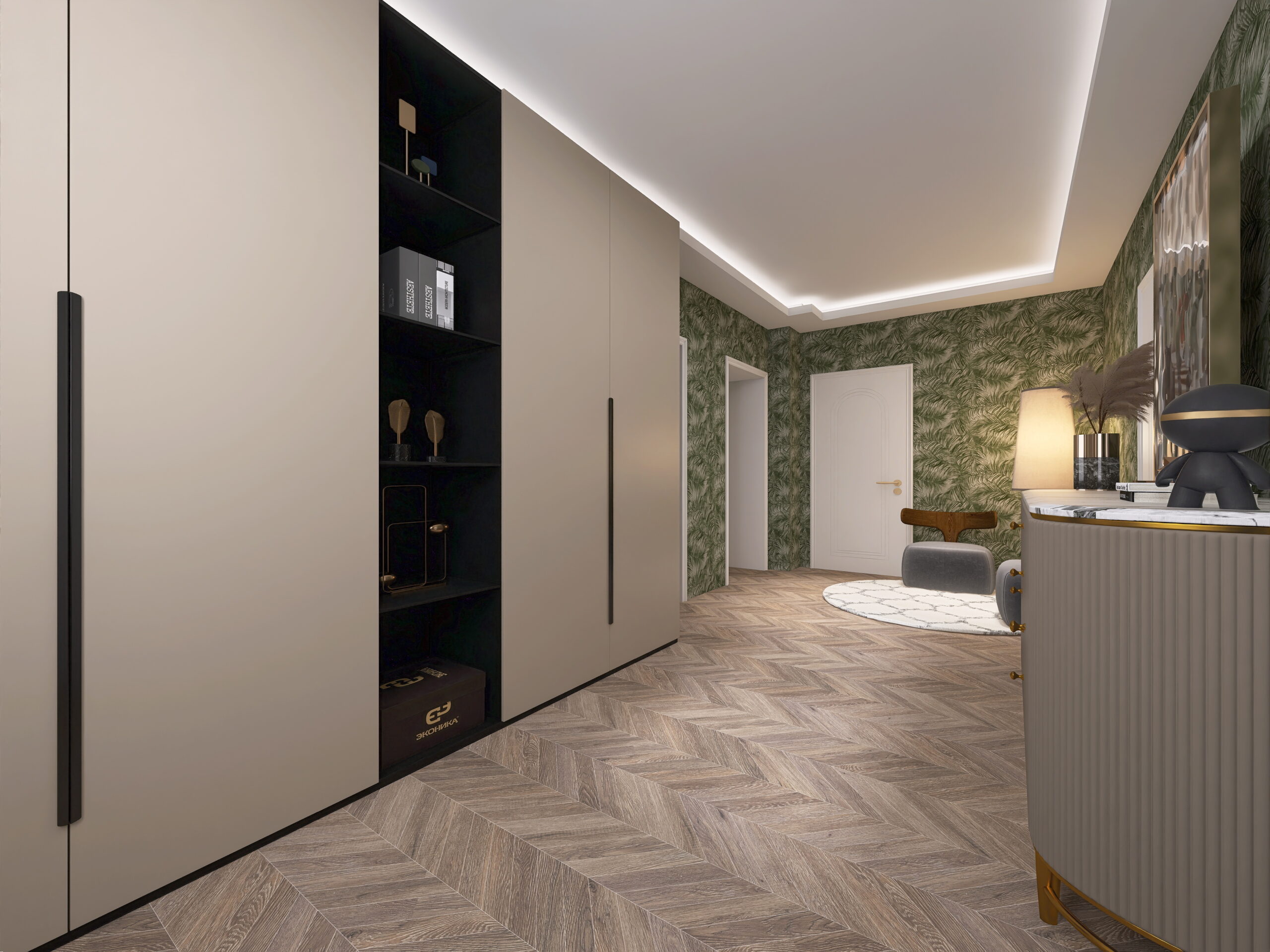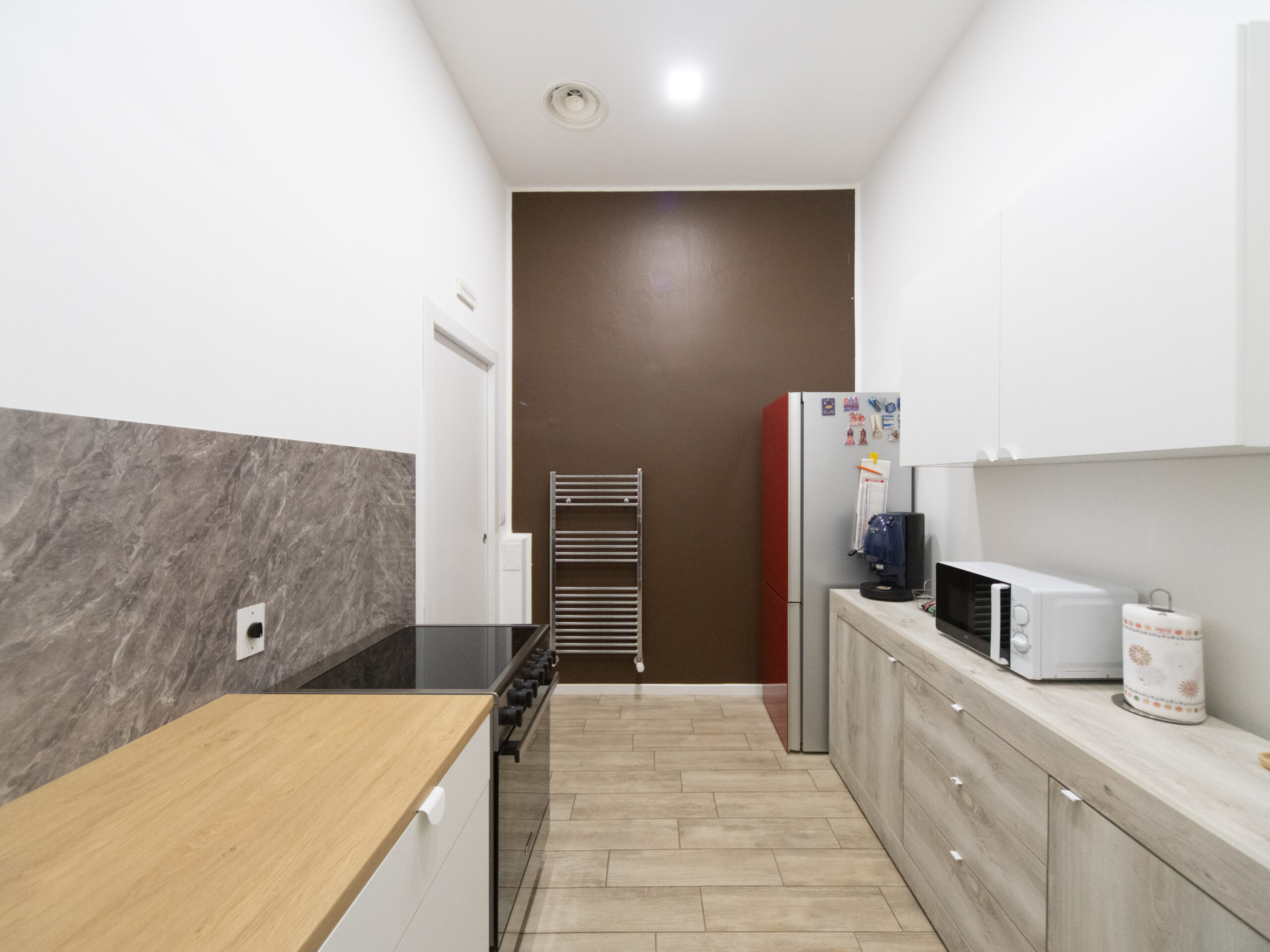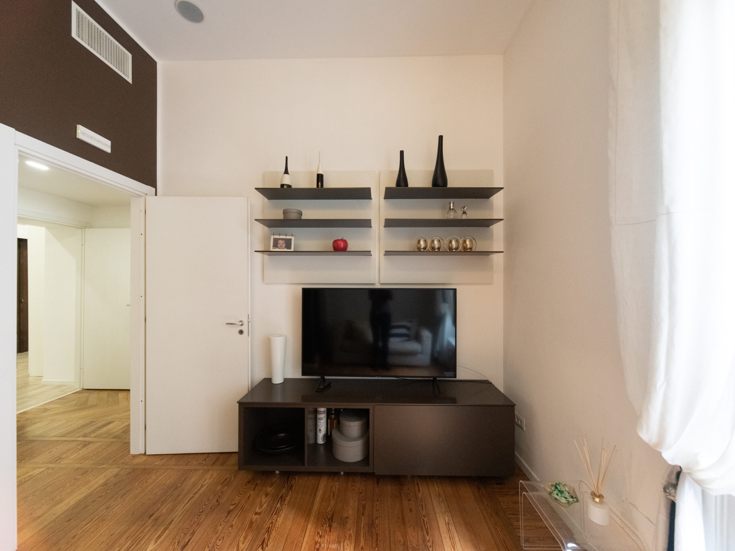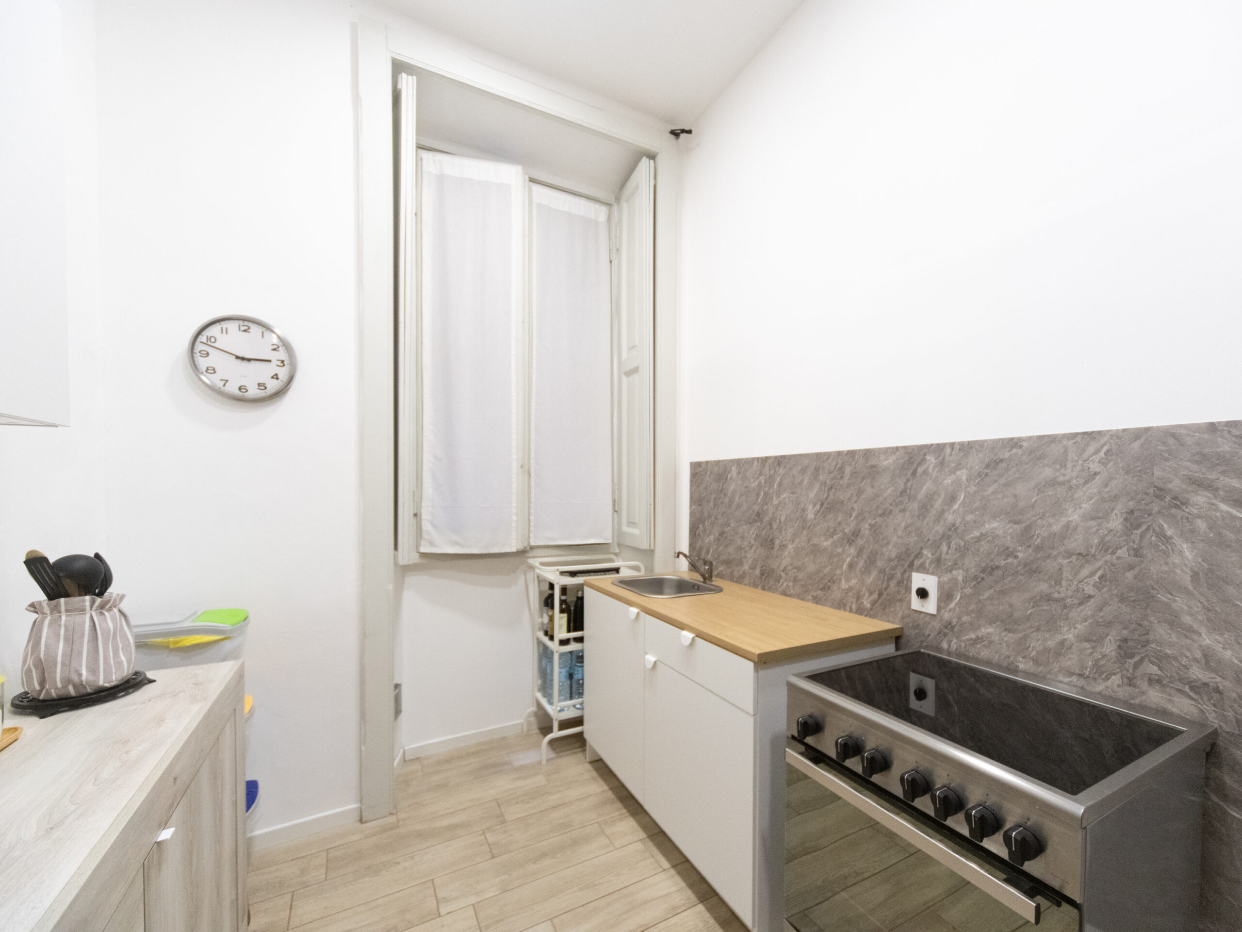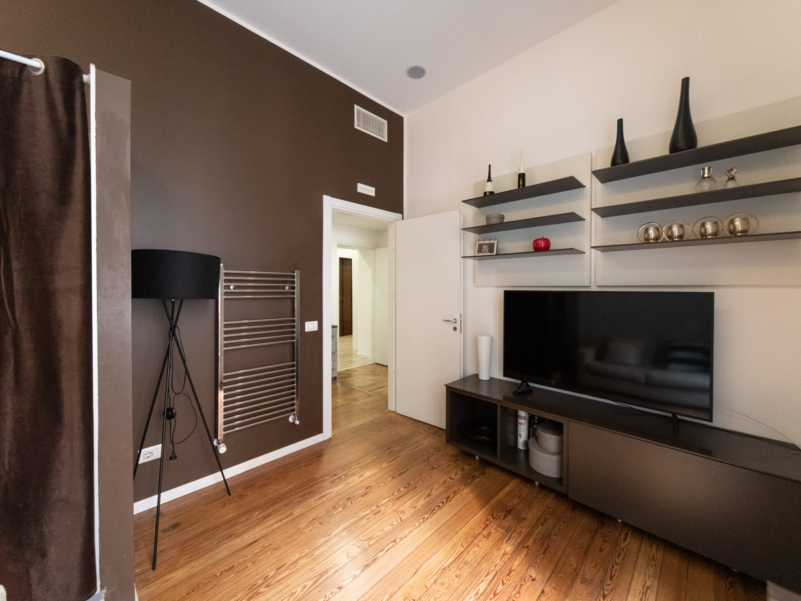 ampio disimpegno d’ingresso, soggiorno, cucina abitabile, camera da letto, cabina armadio, bagno finestrato e ripostiglio