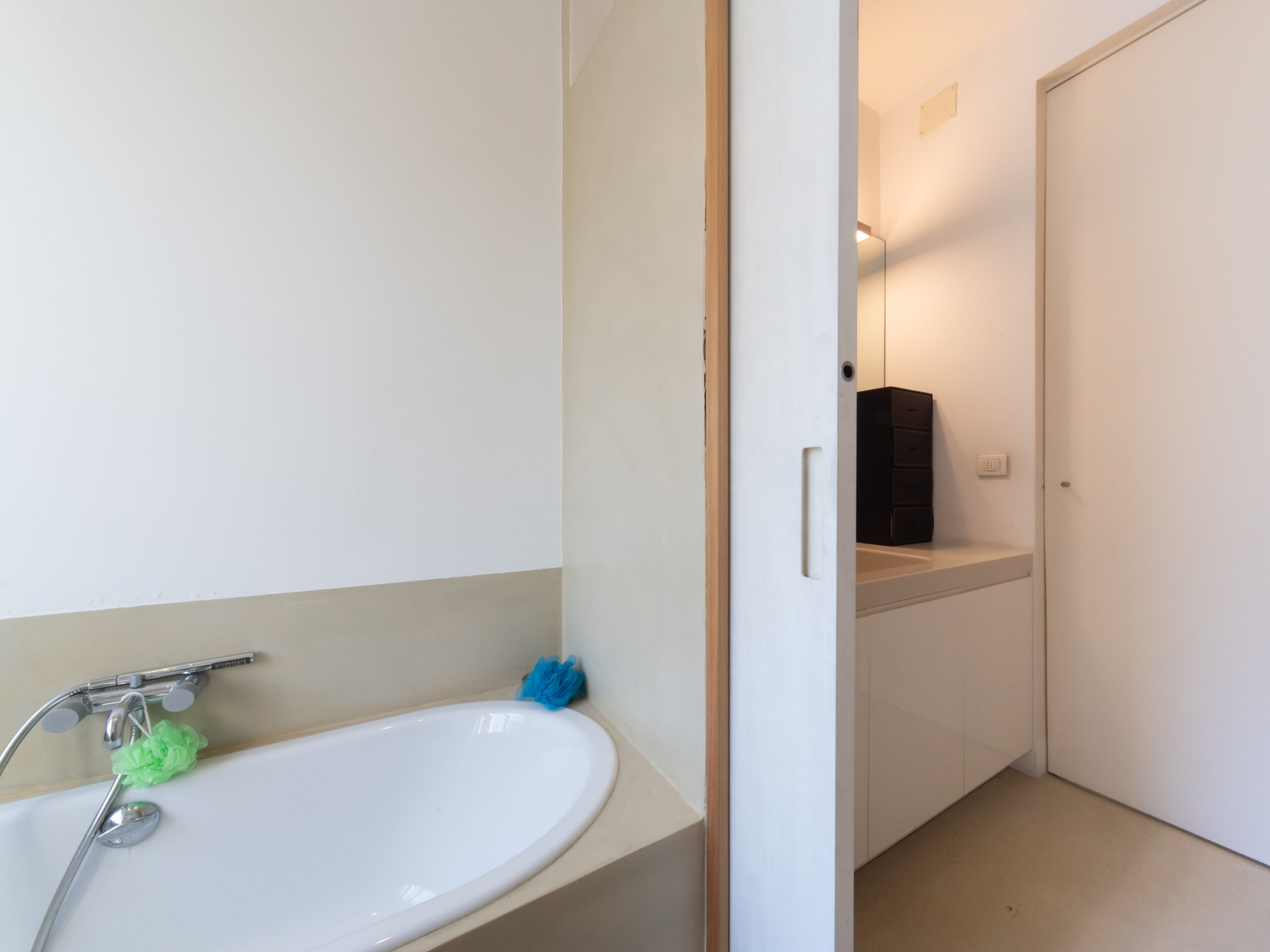 Originariamente l’accesso all’appartamento era configurato con un doppio ingresso; attualmente, uno dei due risulta chiuso.