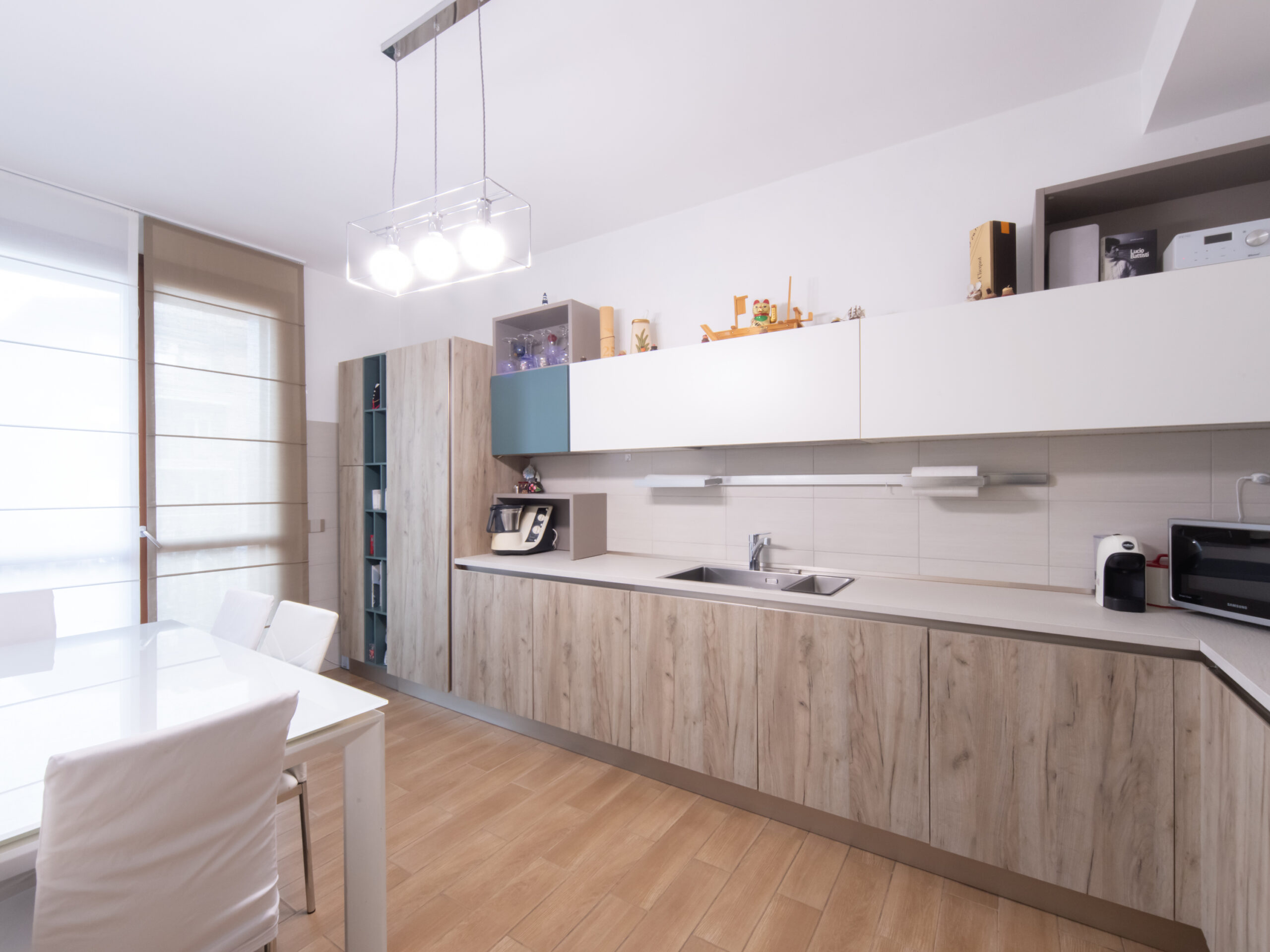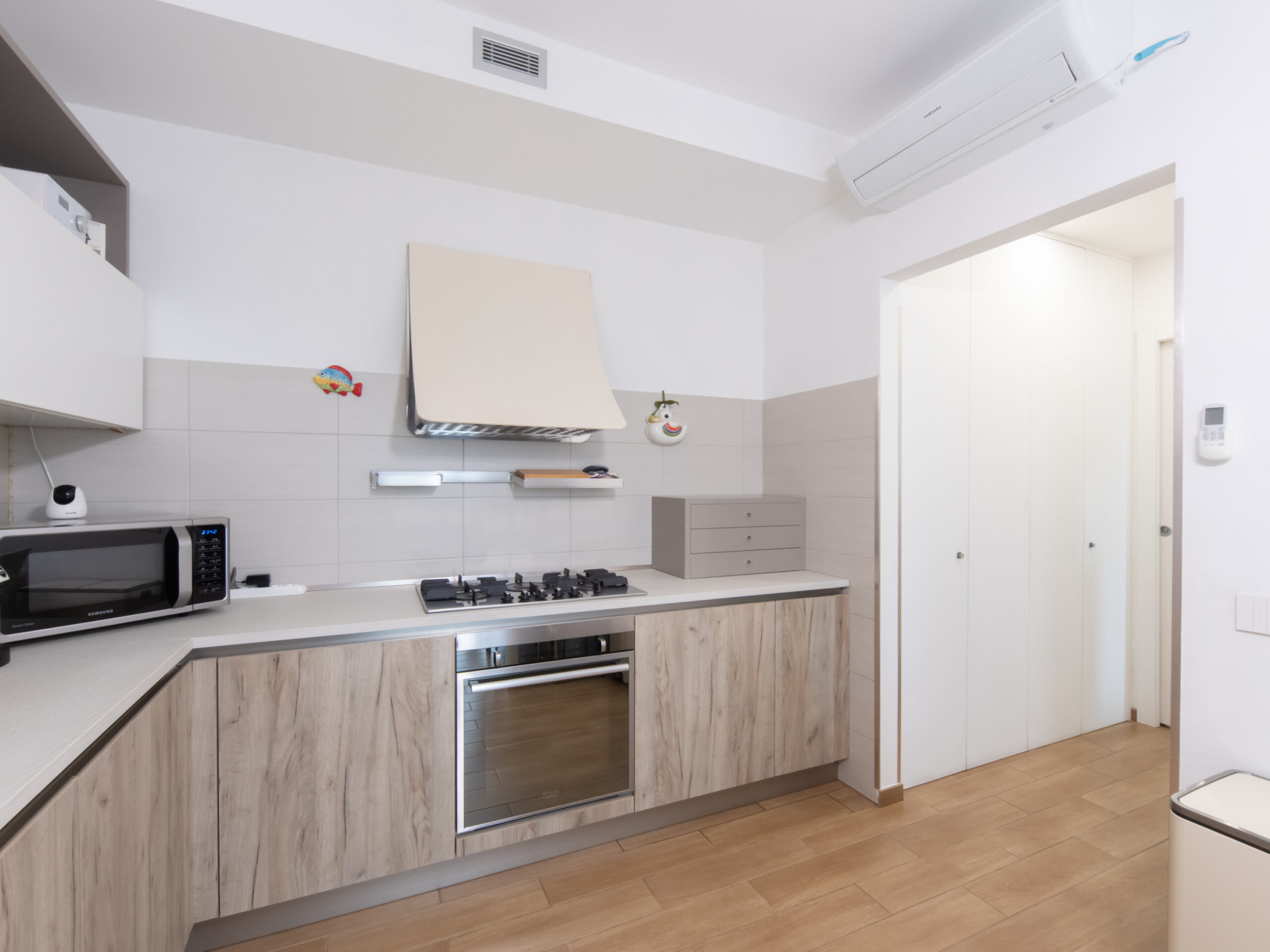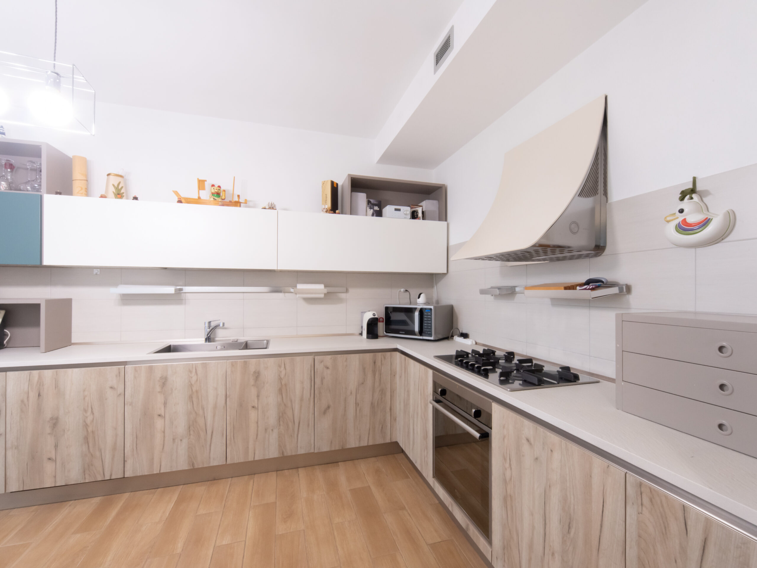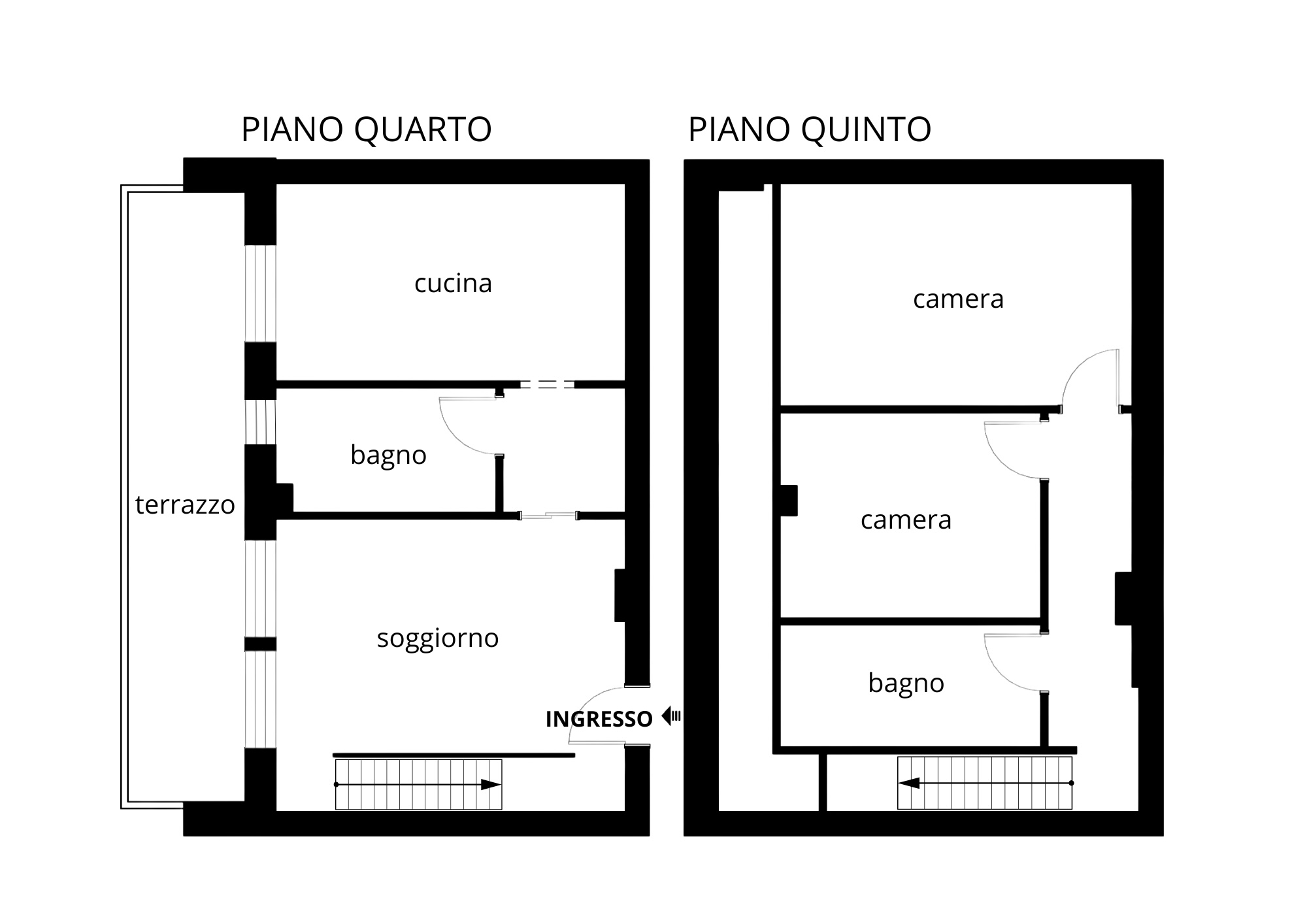 PIANO QUARTO – l’immobile è composto da ingresso, soggiorno con accesso al terrazzo, cucina abitabile con accesso al terrazzo, bagno finestrato con doccia e comoda ed elegante scala interna di collegamento al piano quinto