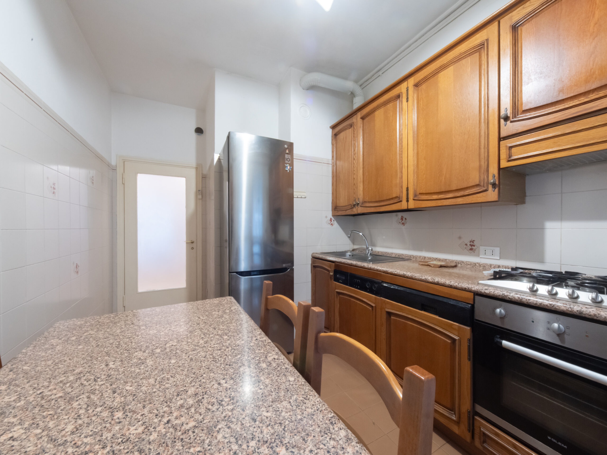 l’immobile è attualmente composto da ampio disimpegno d’ingresso, soggiorno con accesso diretto al balcone 1, cucina abitabile con accesso diretto al balcone 2, camera matrimoniale 1, camera matrimoniale 2, bagno finestrato e ripostiglio