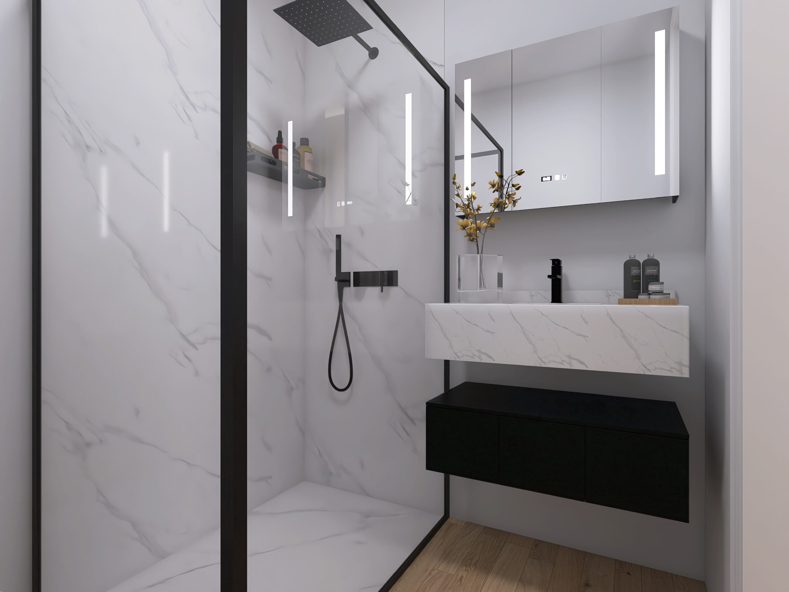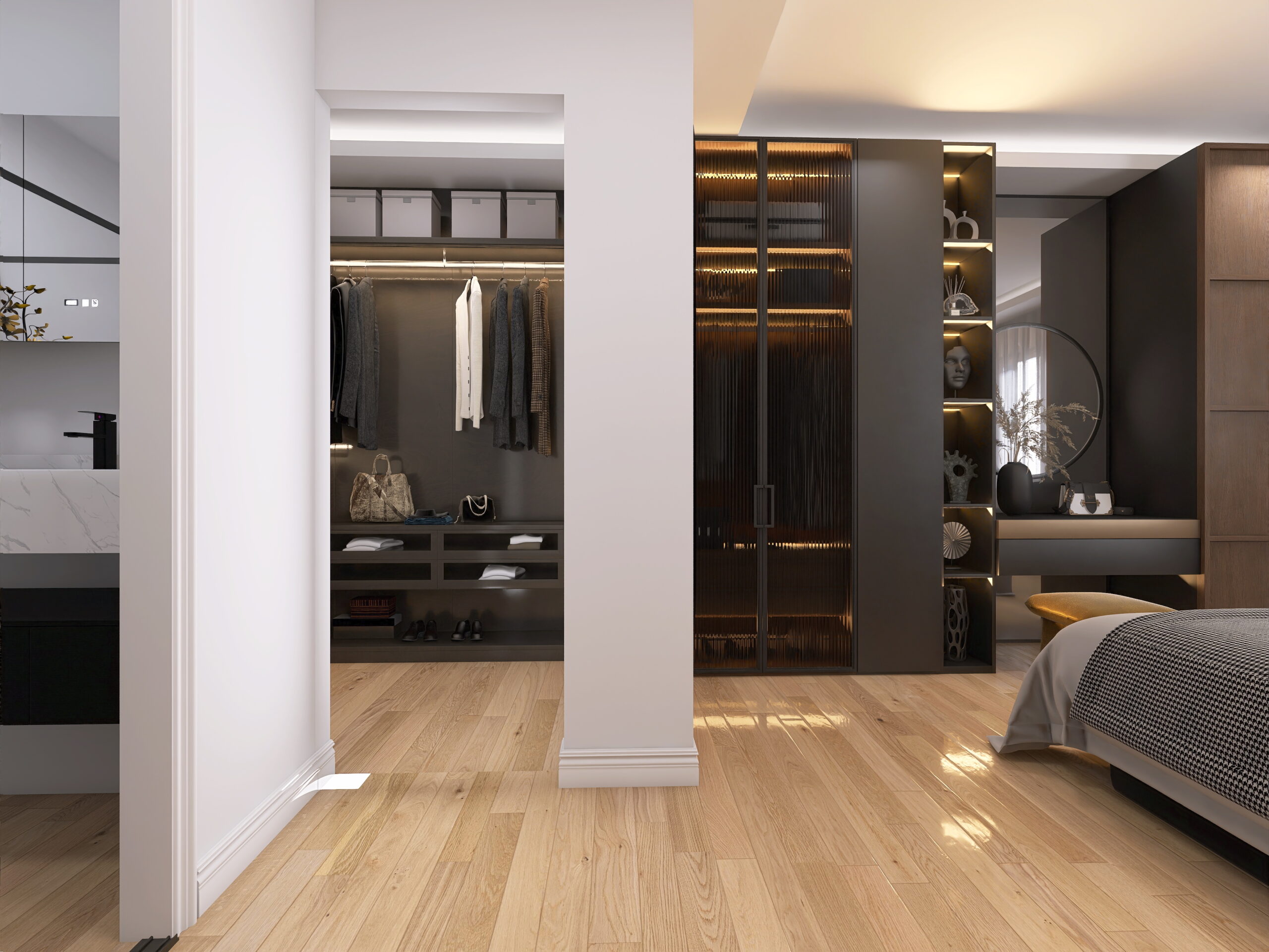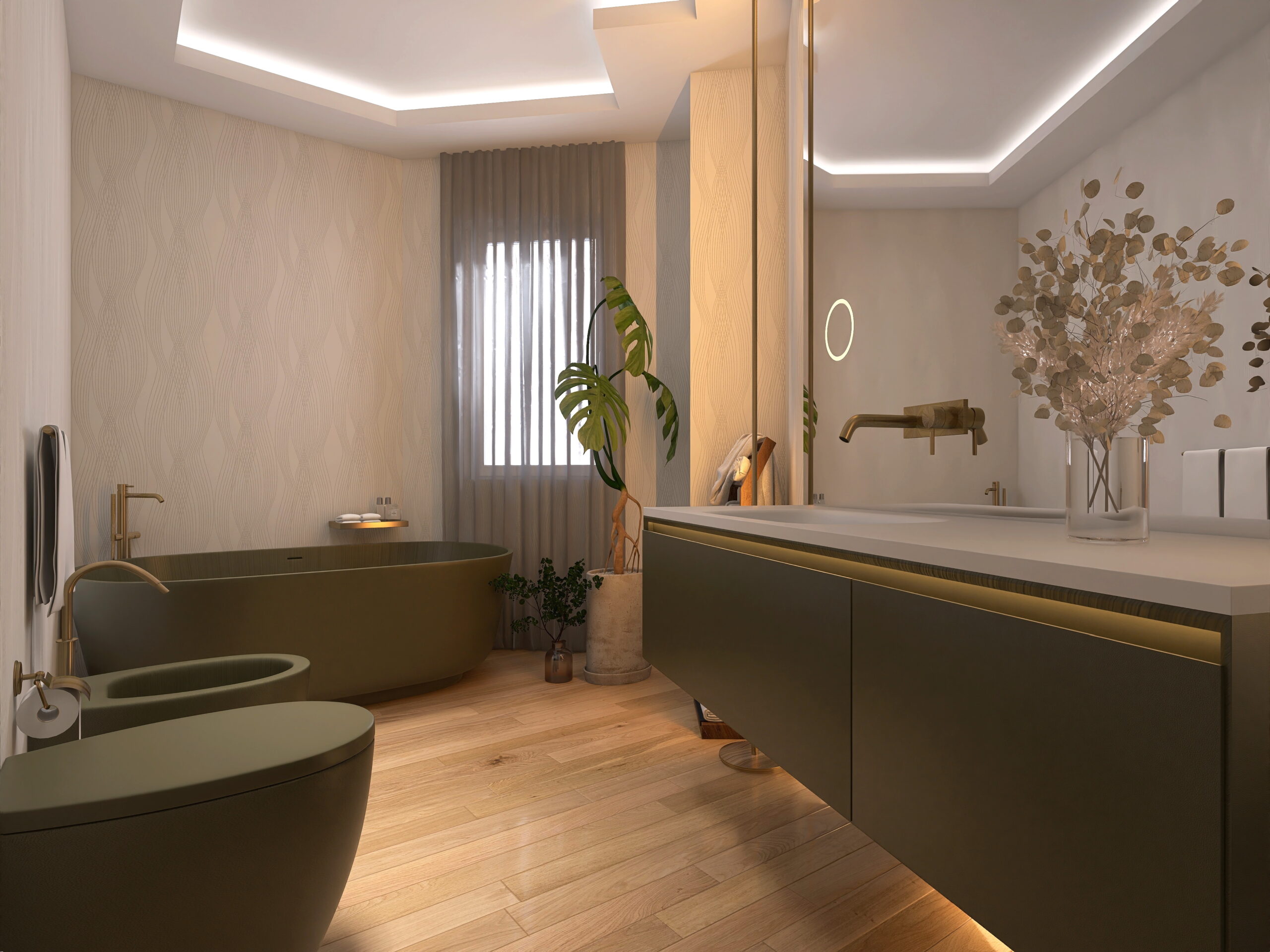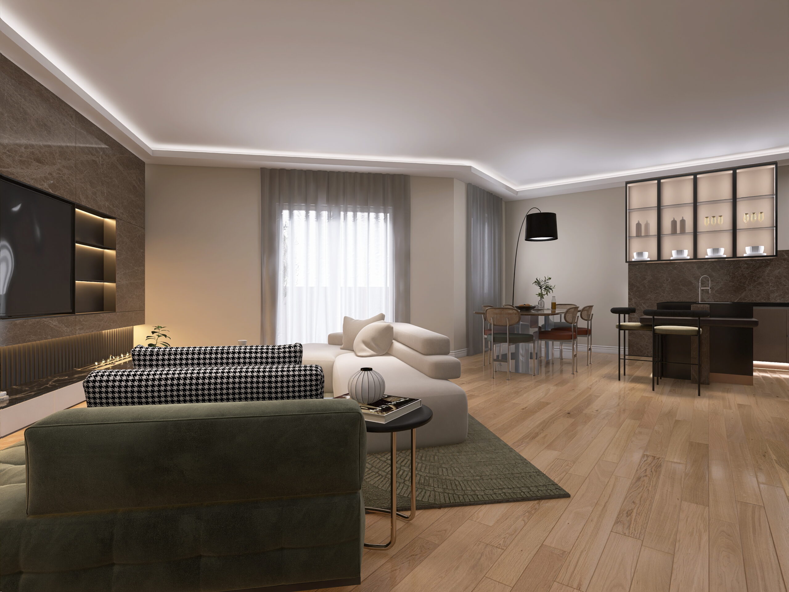 il progetto prevede la suddivisione degli spazi interni (vedi progetto pubblicato) in soggiorno doppio con cucina a vista ed accesso al balcone 1, camera 1 matrimoniale con cabina armadio e bagno en-suite, camera matrimoniale 2 con accesso al balcone 2, bagno 2 finestrato con vasca, camera matrimoniale 3 e ripostiglio/lavanderia