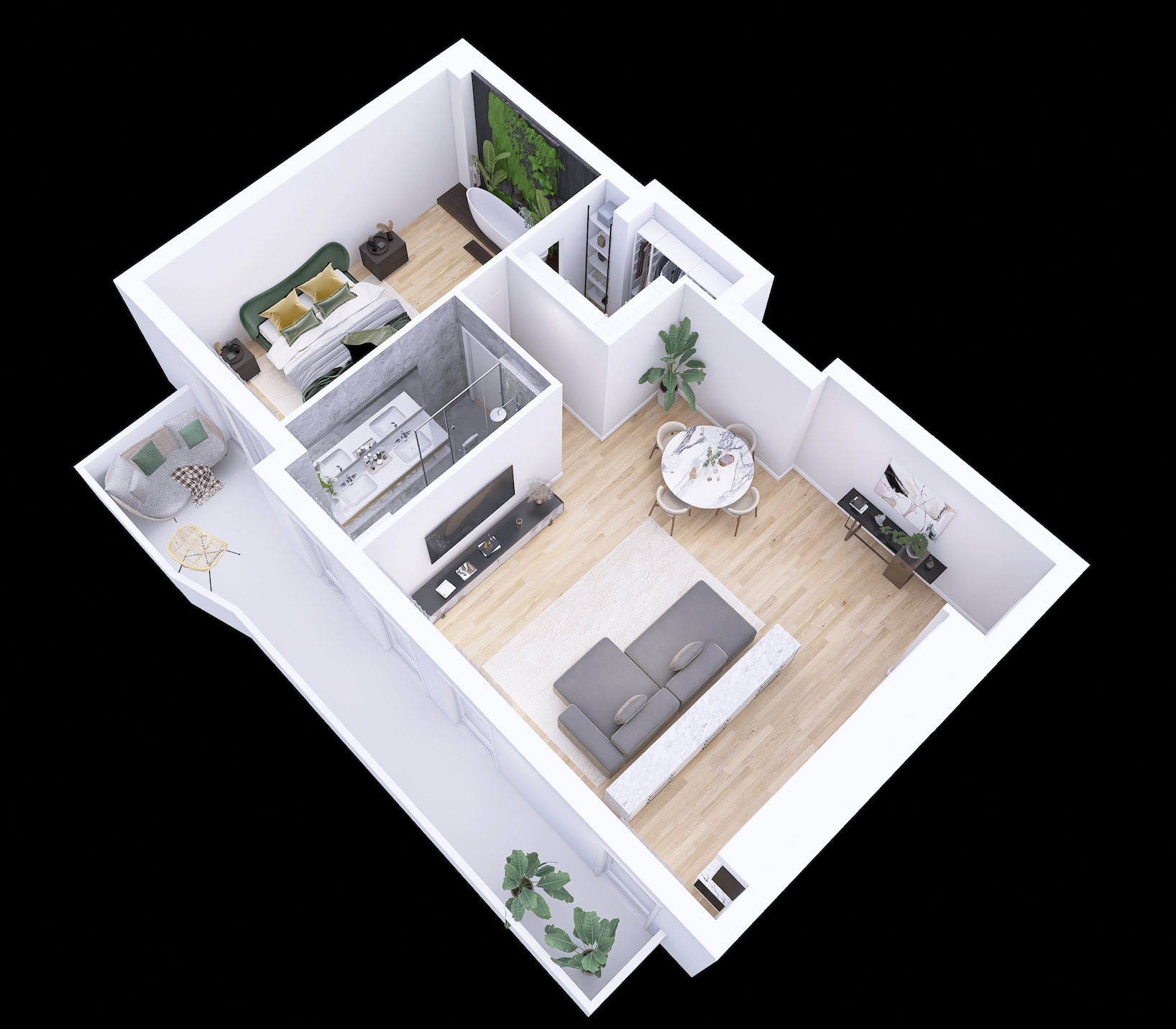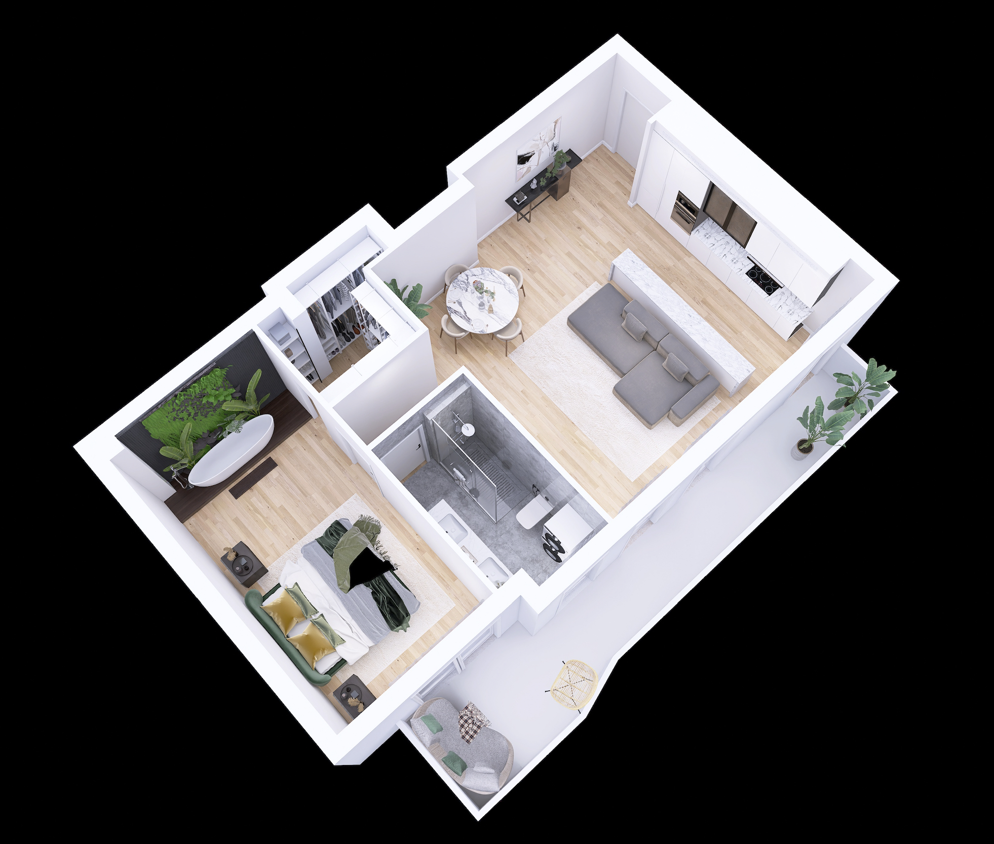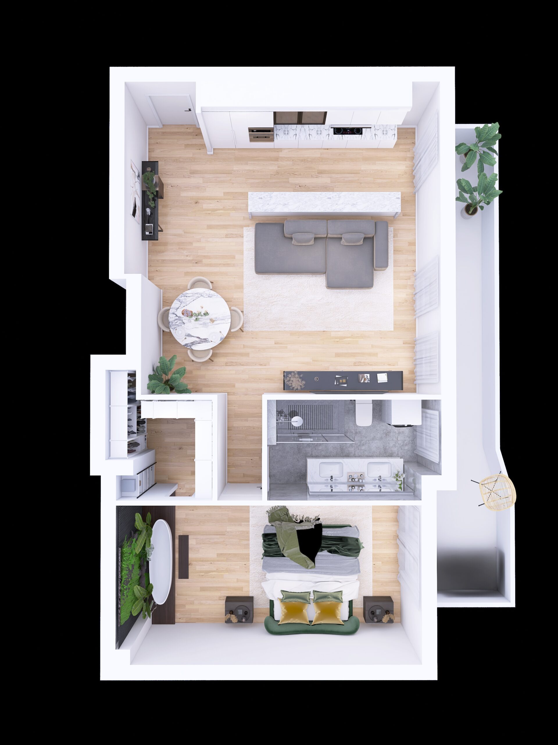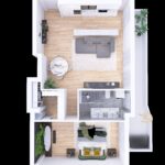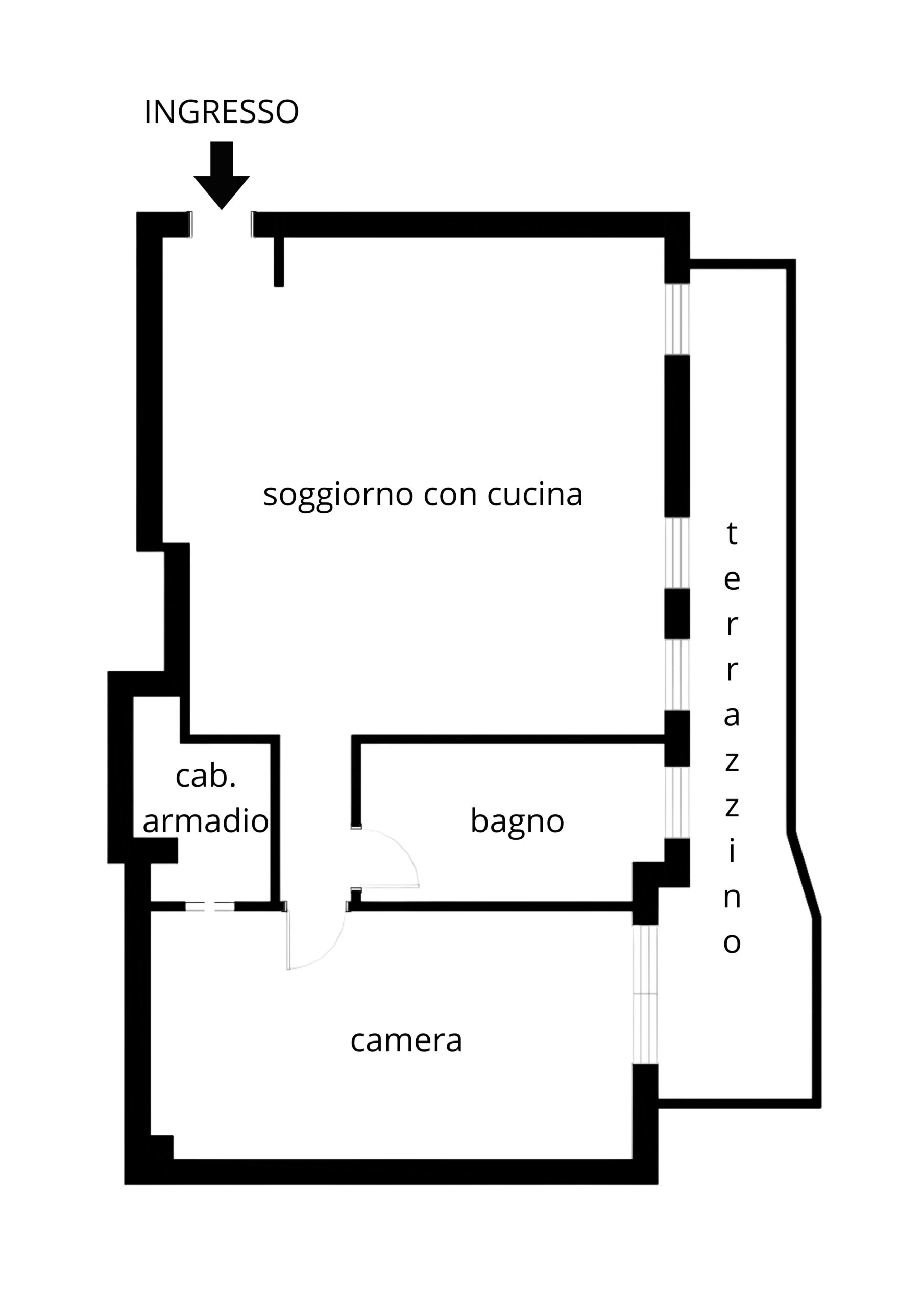 l’immobile è composto da ingresso, soggiorno doppio con cucina a vista ed accesso diretto al terrazzino, grande camera da letto con cabina armadio ed accesso diretto al terrazzino e bagno finestrato