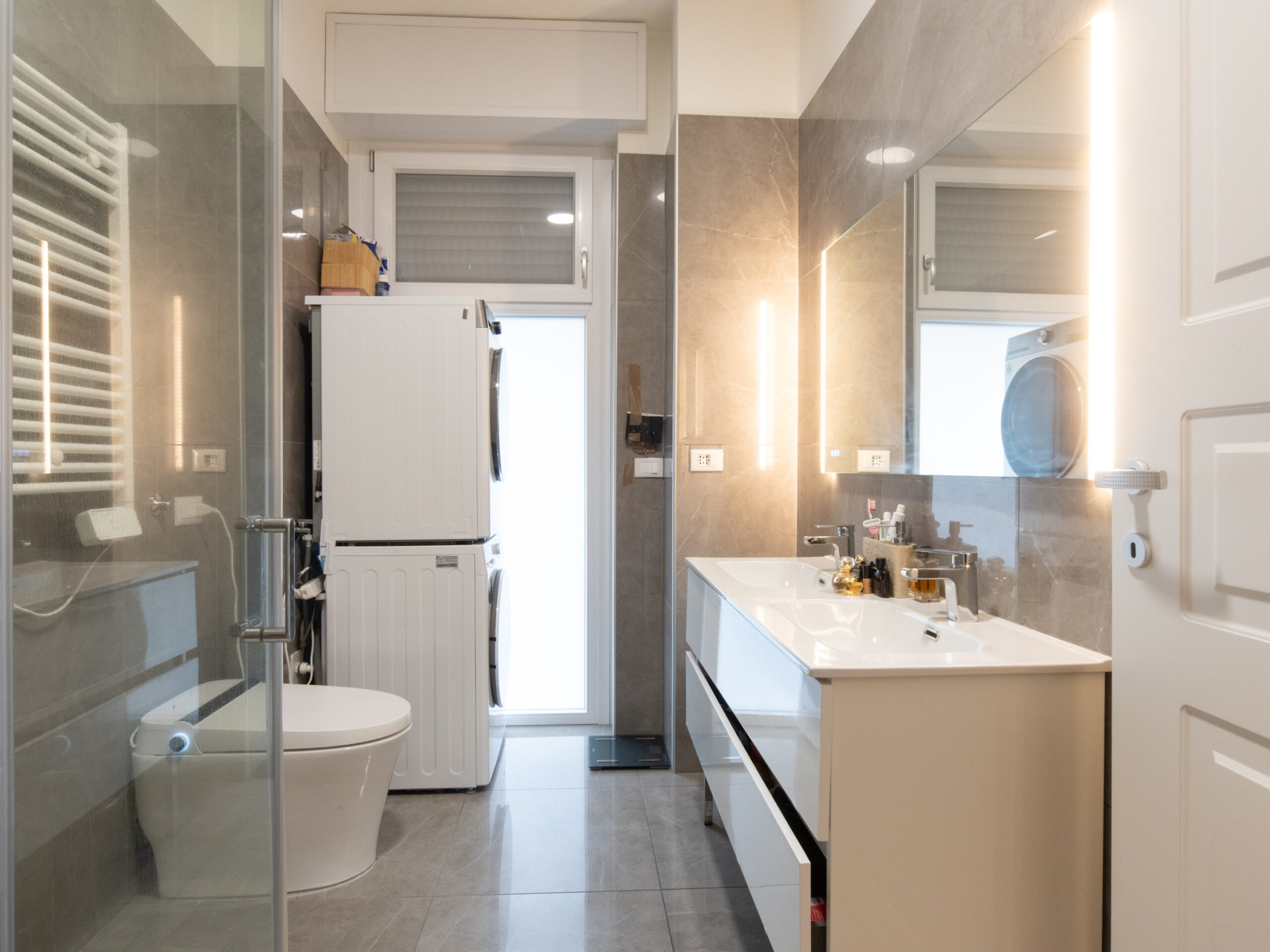 La presenza di porte finestre in tutti gli ambienti garantisce estrema luminosità in tutto l’appartamento.