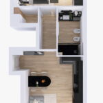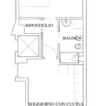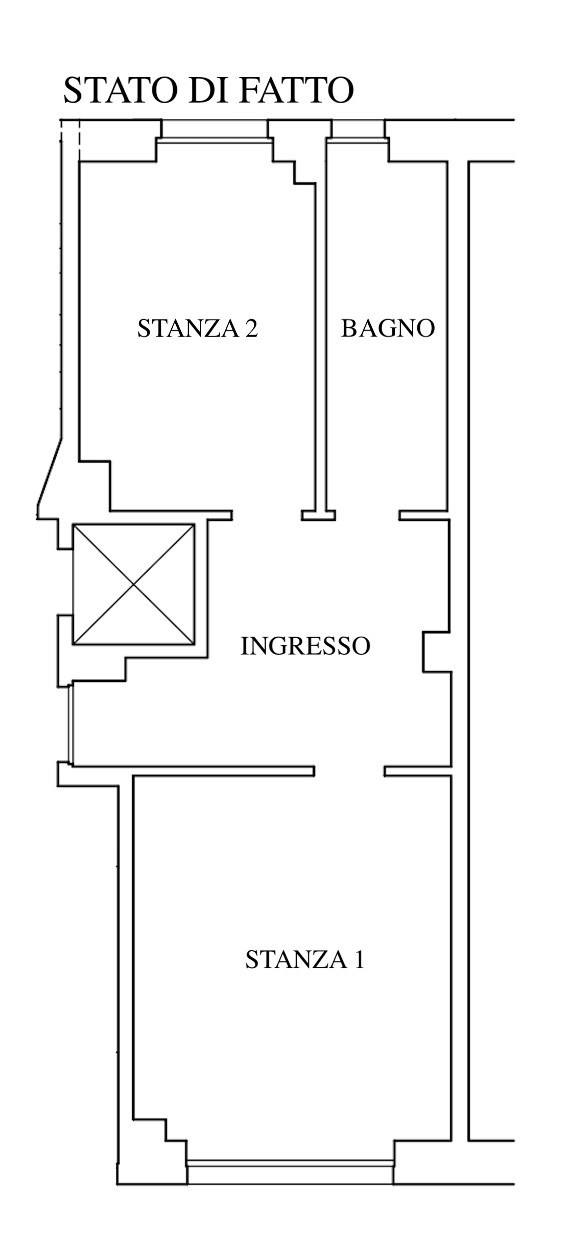 l’immobile è attualmente composto da ampio disimpegno d’ingresso, stanza 1, stanza 2 e bagno