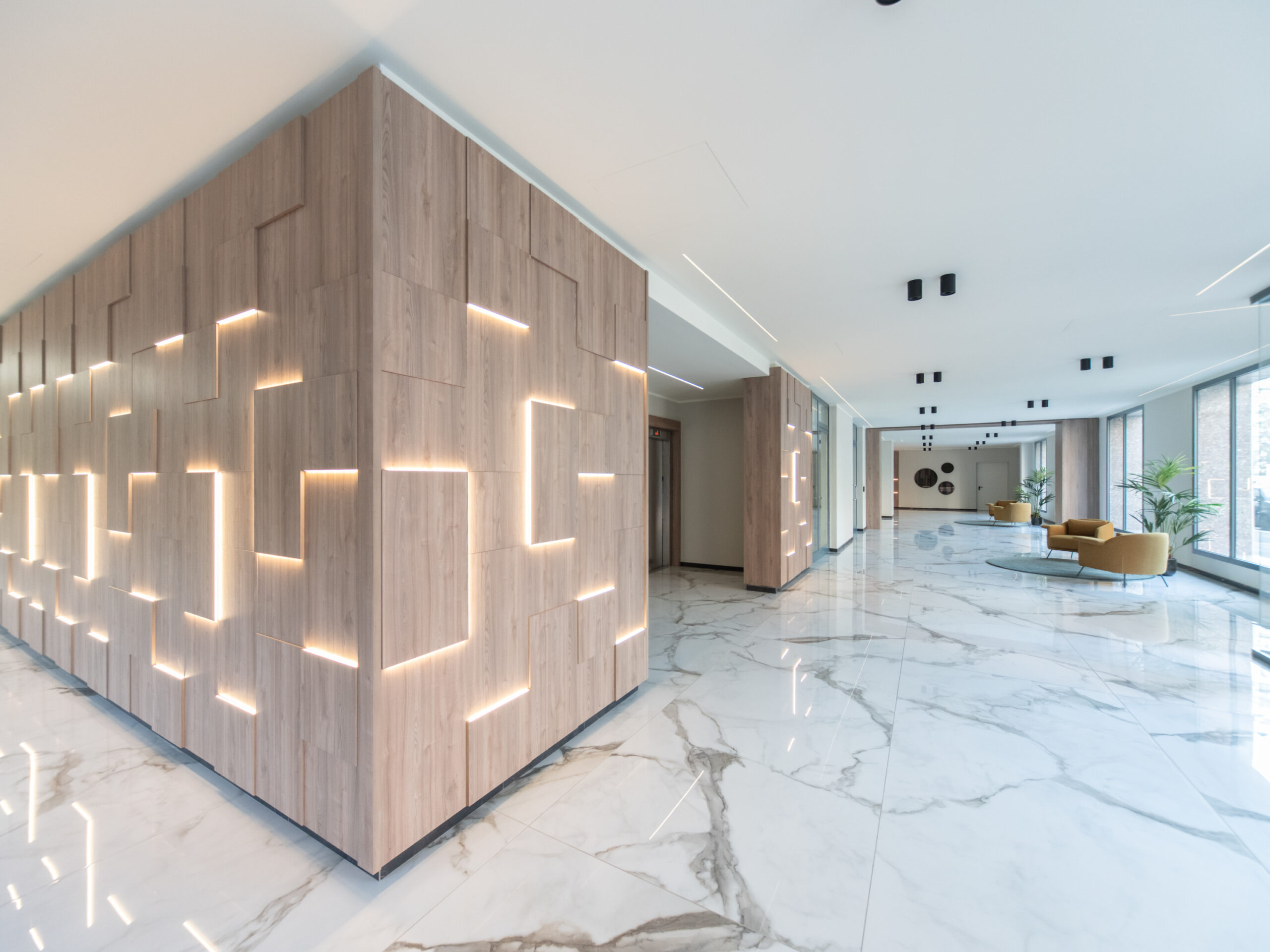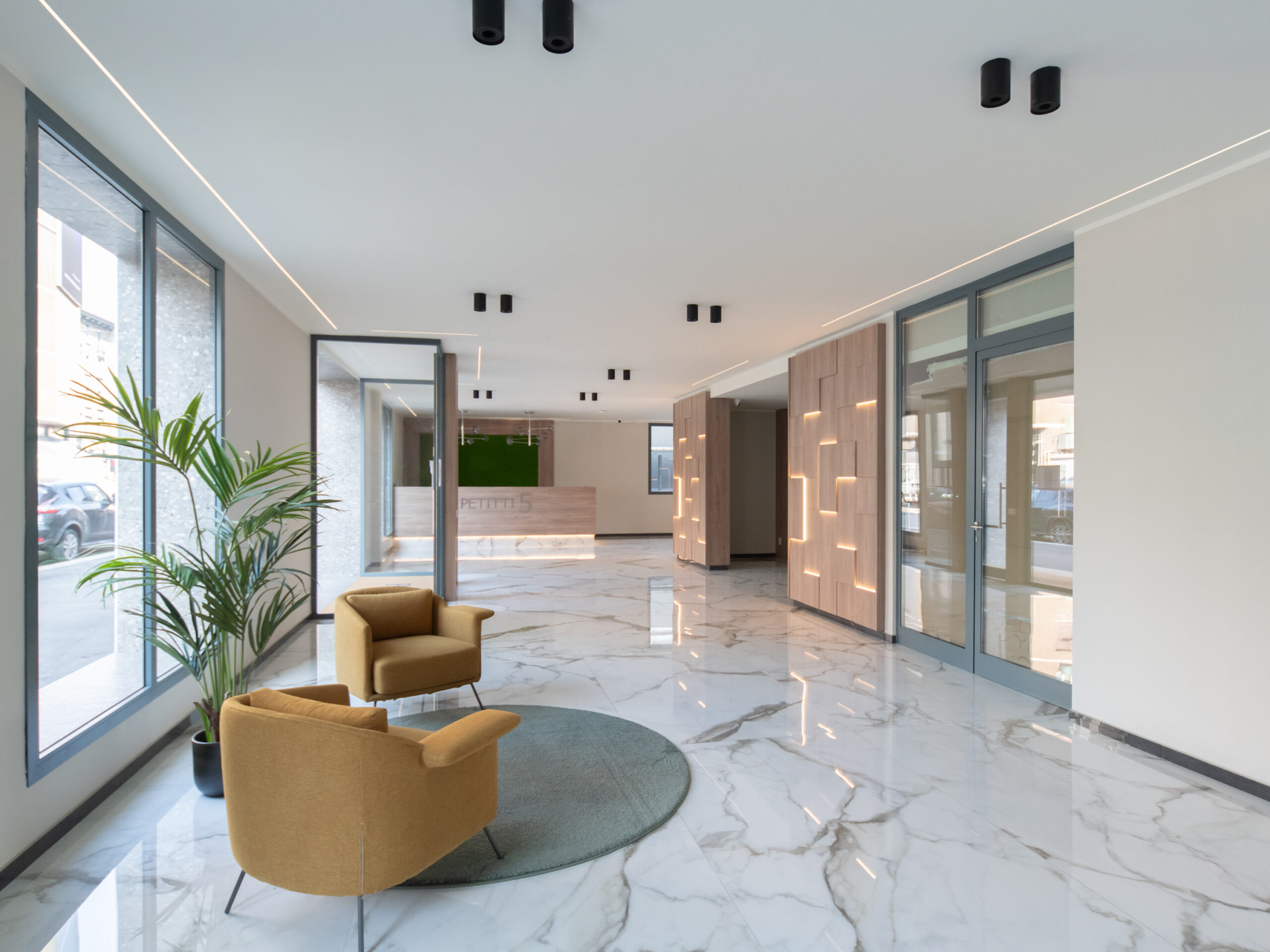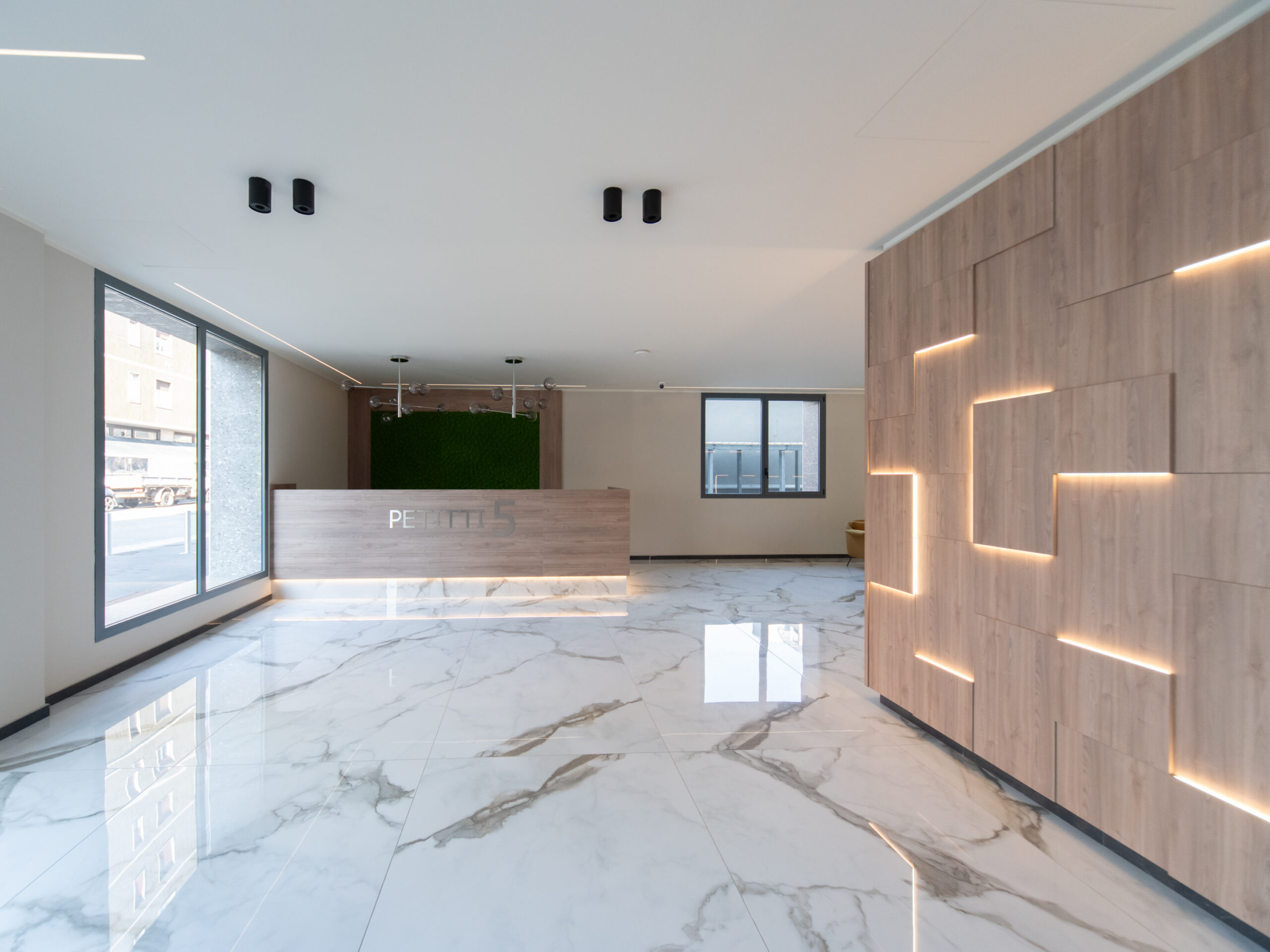 Ad accogliere i residenti una maestosa hall d’ingresso con servizio di portineria attualmente attivo mezza giornata e videosorveglianza attiva h24.